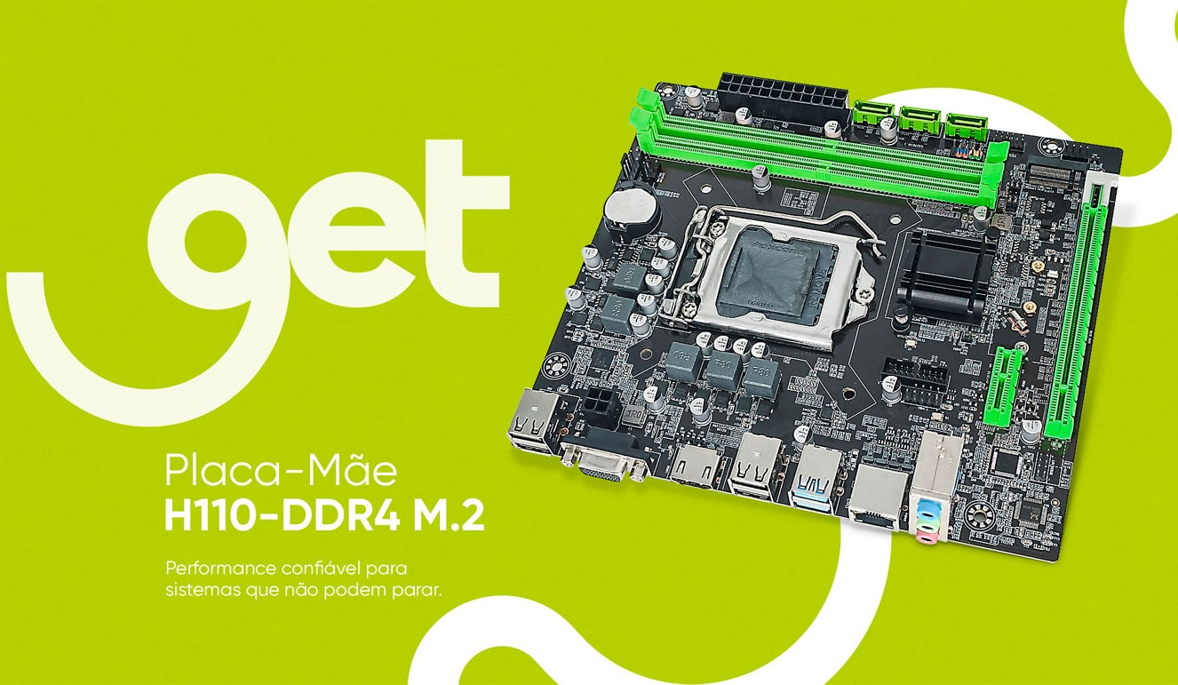 A Placa Mãe GET H110 com chipset Intel® H110 é ideal para montar ou atualizar seu computador com eficiência, estabilidade e conectividade moderna. Compatível com processadores Intel® Core de 6ª até 8ª geração (LGA 1151), ela oferece suporte para memória DDR4 em Dual Channel com até 32GB (2x slots de até 16GB).
